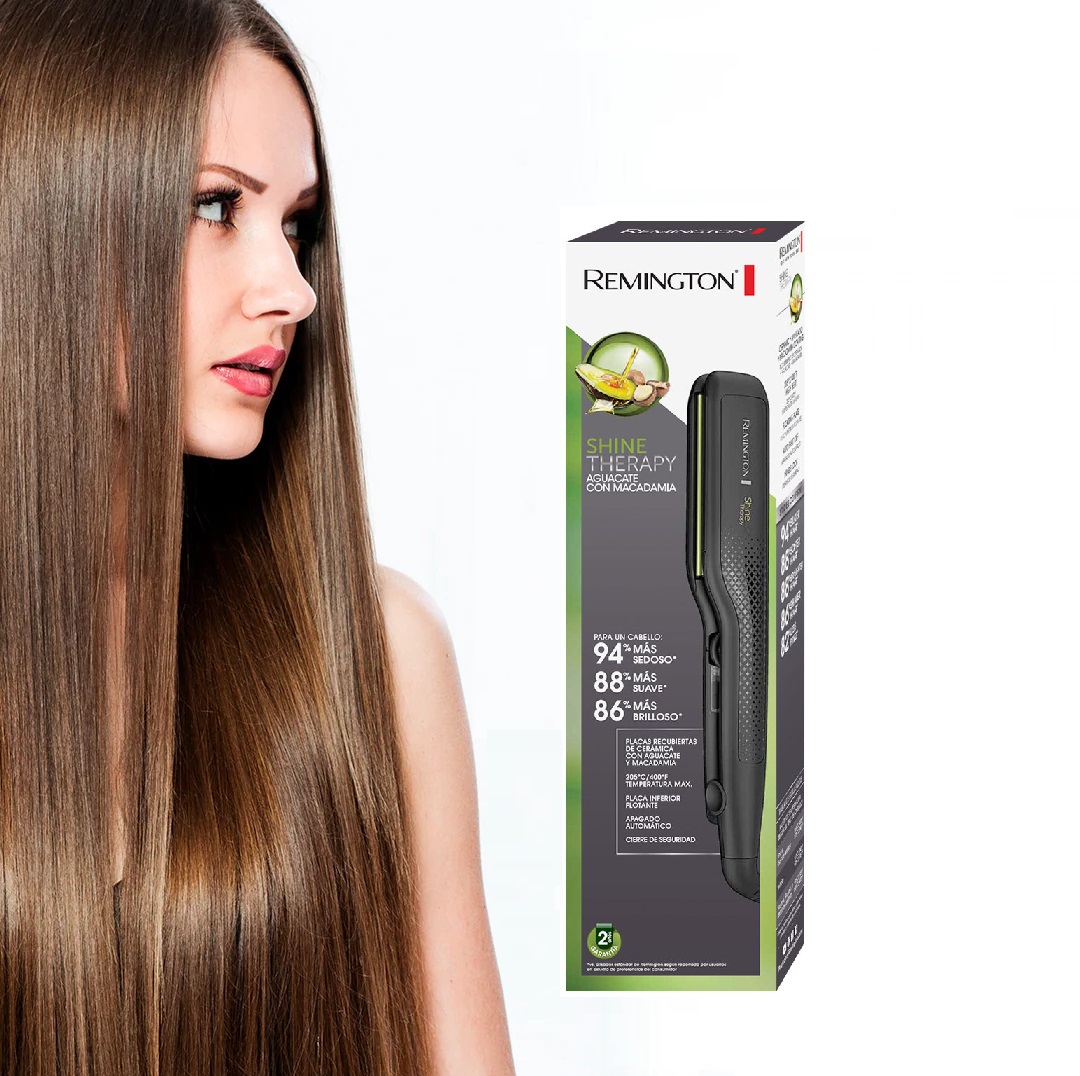 Con la plancha Remington Shine Therapy con Aguacate y Macadamia, no solo alisas tu cabello, sino que lo cuidas, fortaleces y le proporcionas un brillo espectacular. ¡Descubre el secreto de un cabello liso, sano y lleno de vida!