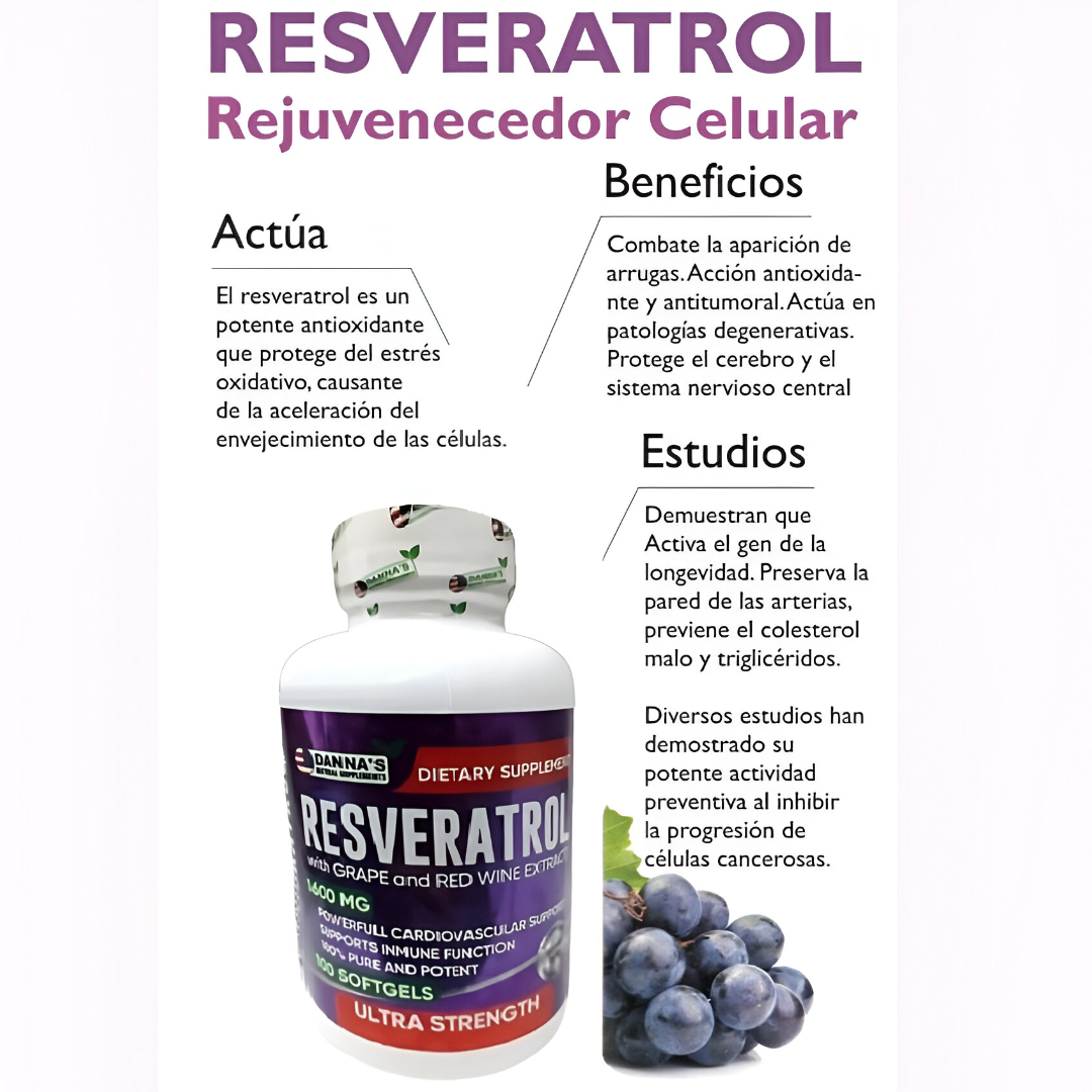 ¡Invierte en tu salud a largo plazo con Danna’s Resveratrol Ultra Strength y siente la diferencia de un cuerpo protegido y revitalizado!