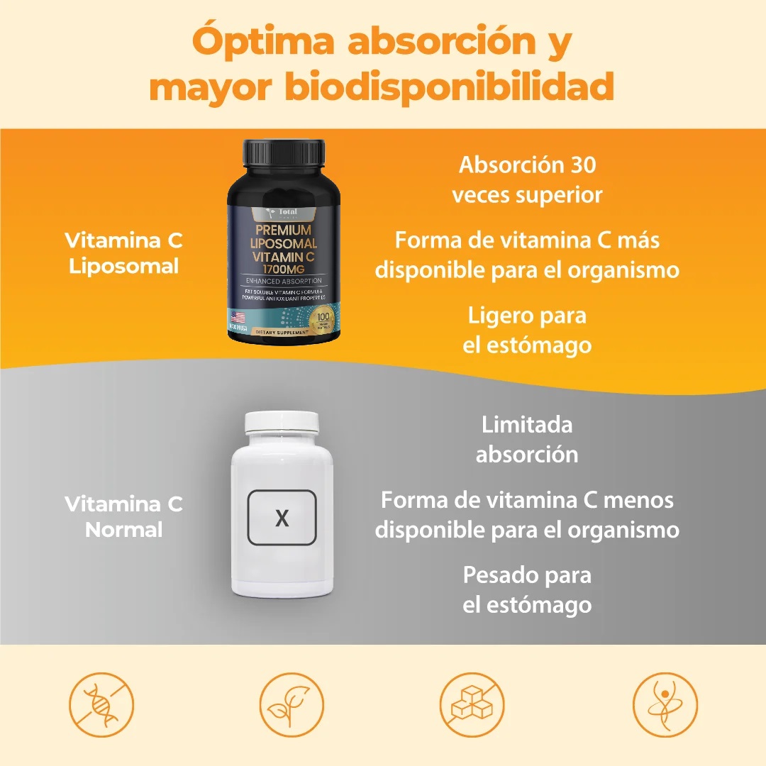 ¡Elige Total Health Premium Liposomal Vitamin C para una absorción avanzada y potente! Tu cuerpo te lo agradecerá.